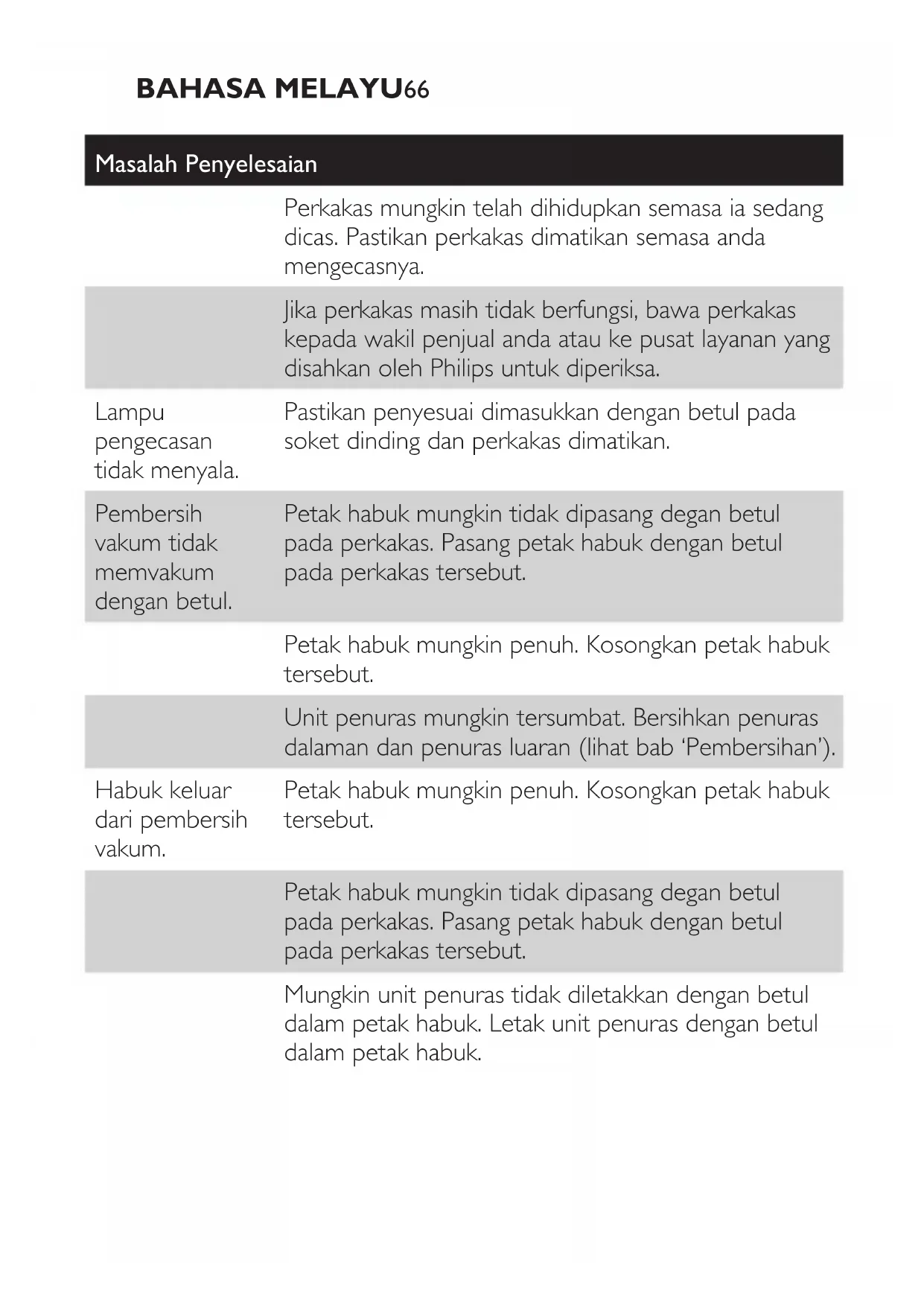 boleh membawa perkakas tersebut ke pusat servis Philips. Kakitangan