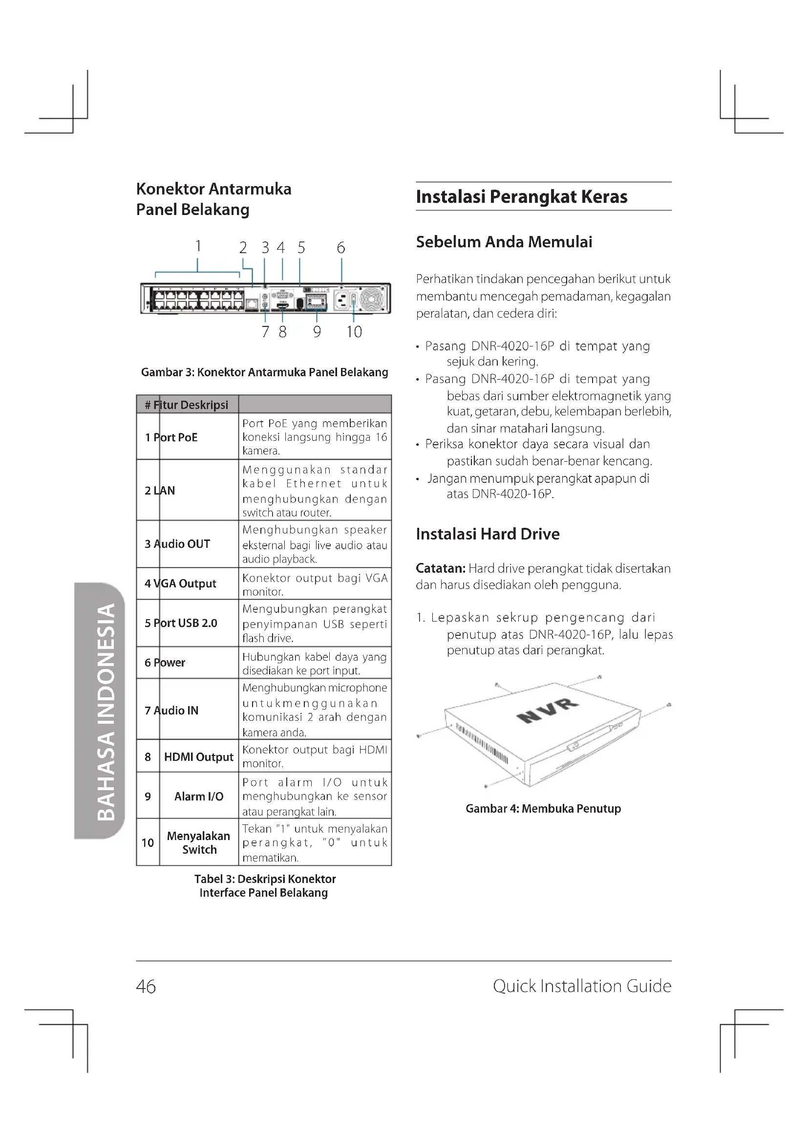 - Pasang DNR-4020-16P di tempat yang sejuk dan kering.