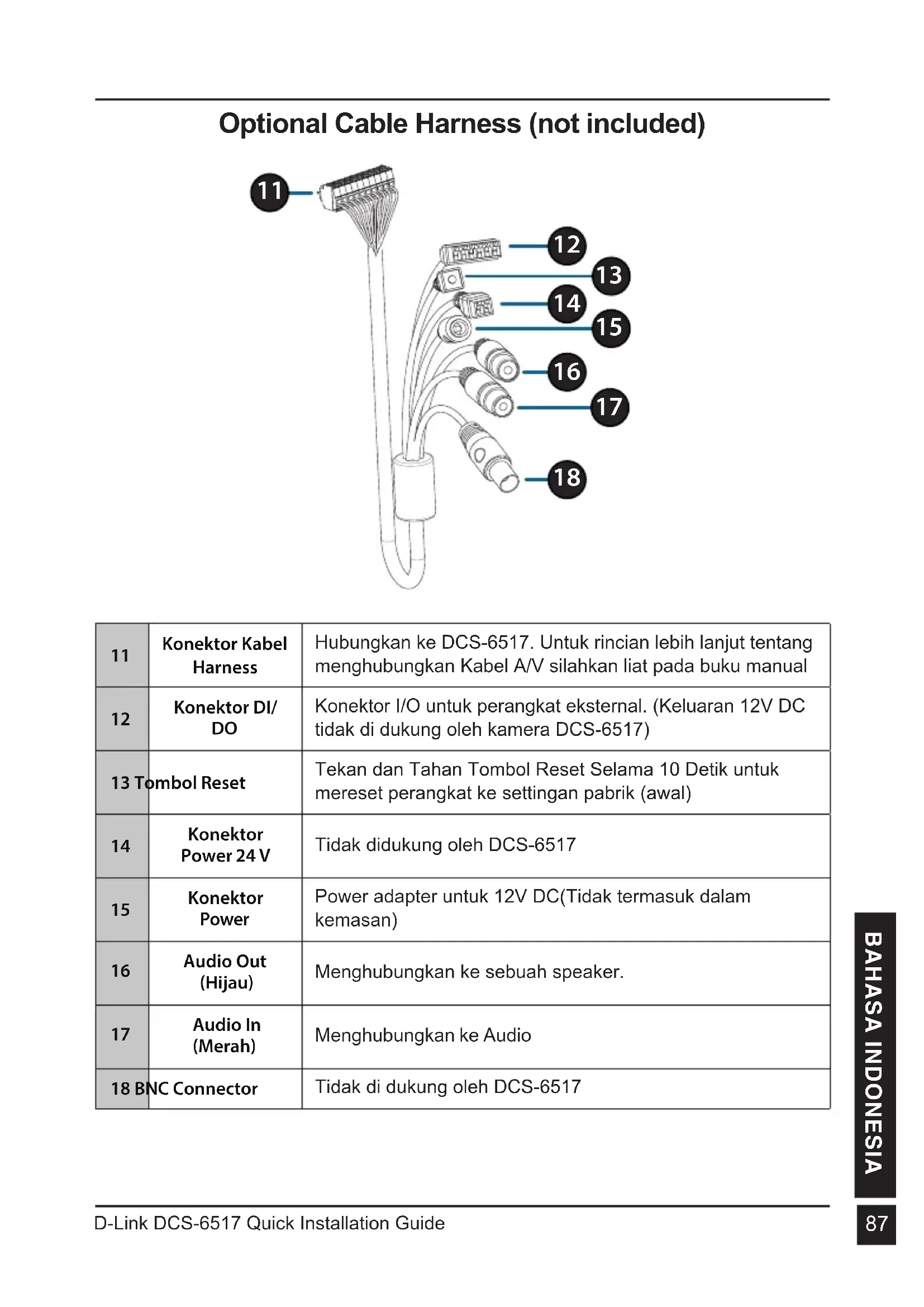 Konektor Kabel Harness Hubungkan ke DCS-6517. Untuk rincian lebih lanjut tentang menghubungkan Kabel A/V silahkan liat pada buku manual