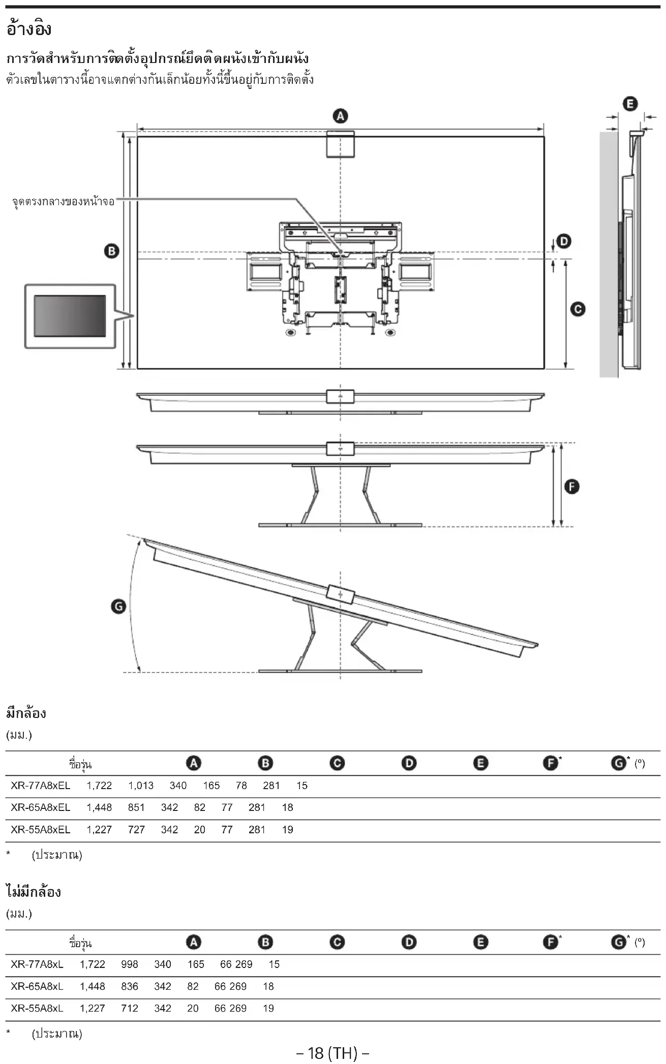 - Dalam nama model yang sebenarnya, "x"/"xx" menandakan angka dan/atau karakter yang spesifik untuk setiap model. XR-77A8xL / 77A8xEL / 65A8xL / 65A8xEL / 55A8xL / 55A8xEL Kepada Pelanggan Untuk alasan perlindungan produk dan keselamatan, Sony sangat menganjurkan pemasangan TV Anda dilakukan oleh dealer Sony atau kontraktor yang memiliki lisensi. Jangan mencoba untuk memasangnya sendiri. Kepada Dealer Sony dan Kontraktor Beri perhatian penuh pada keselamatan selama pemasangan, pemeliharaan rutin dan pemeriksaan produk ini. Keahlian yang memadai diperlukan untuk memasang produk ini, khususnya untuk menentukan kekuatan dinding guna menahan berat TV. Pastikan untuk mempercayakan perlengkapan dinding produk ini kepada dealer Sony atau kontraktor yang memiliki lisensi dan memberi perhatian yang cukup kepada faktor keselamatan selama pemasangan. Sony tidak bertanggung jawab atas semua kerusakan atau cedera yang timbul karena kesalahan penanganan atau pemasangan yang tidak benar. Untuk Keselamatan dan pemasangan yang benar, ikuti Petunjuk Pengoperasian Braket Penyangga Dinding, Panduan Penyetelan TV, dan pengarahan dalam petunjuk ini.− 3 (ID) −