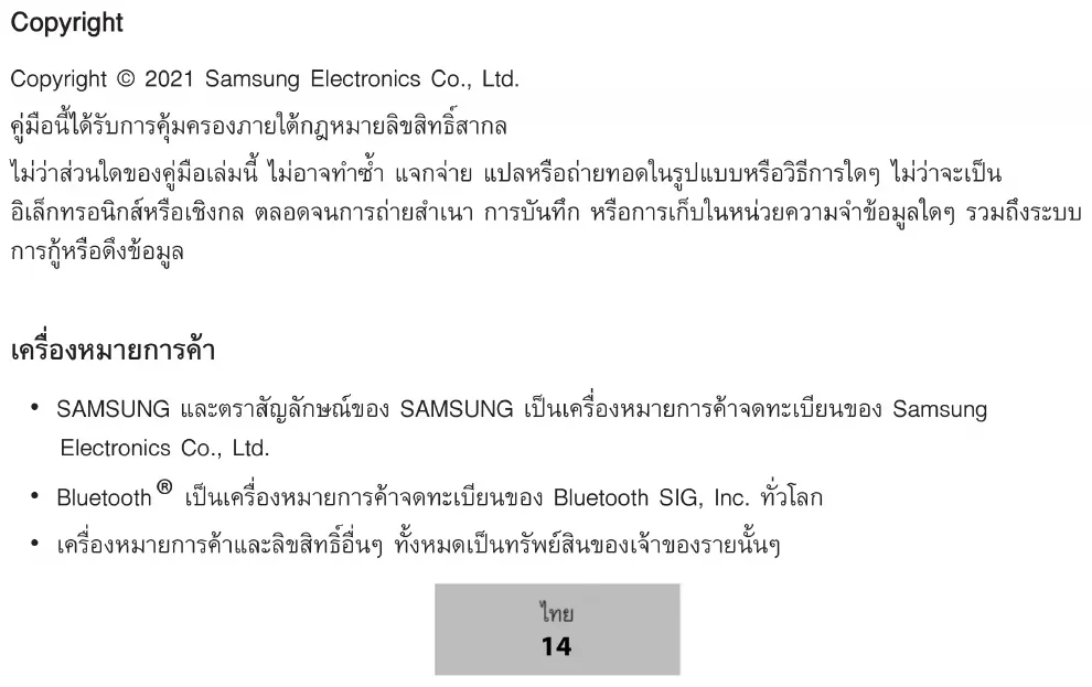Jika S Pen atau baterai terkena suhu yang sangat dingin atau sangat panas, pengisian daya yang berdaya guna mungkin berkurang. Baterai dapat habis dan pengisian daya yang berdaya guna semakin lama akan semakin singkat. Bluetooth tidak berfungsi dengan baik Jika S Pen Anda tidak ditemukan atau ada masalah koneksi atau malfungsi kinerja, coba langkah berikut: Pastikan S Pen Anda siap untuk dipindai atau dihubungkan. Pastikan S Pen dan perangkat Bluetooth lain berada dalam jangkauan maksimum Bluetooth (10 m).Jika saran di atas tidak menyelesaikan masalah, hubungi Pusat Layanan Samsung. Bahasa Indonesia 13Hak cipta Hak cipta © 2021 Samsung Electronics Co., Ltd. Panduan ini dilindungi oleh undang-undang hak cipta internasional. Seluruh bagian dari panduan ini tidak boleh diproduksi ulang, didistribusikan, diterjemahkan, atau diteruskan dalam bentuk apa pun atau dengan cara apa pun, baik elektronik maupun mekanik, hal ini mencakup melakukan fotokopi, merekam, atau menyimpan pada sistem penyimpanan informasi dan perbaikan apa pun. Merek Dagang