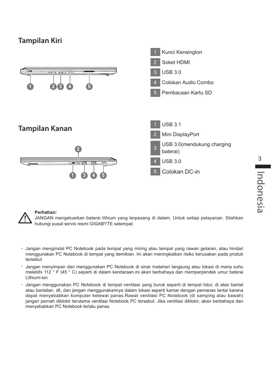 Perhatian: JANGAN mengeluarkan baterai lithium yang terpasang di dalam, Untuk setiap pelayanan. Silahkan hubungi pusat servis resmi GIGABYTE setempat.