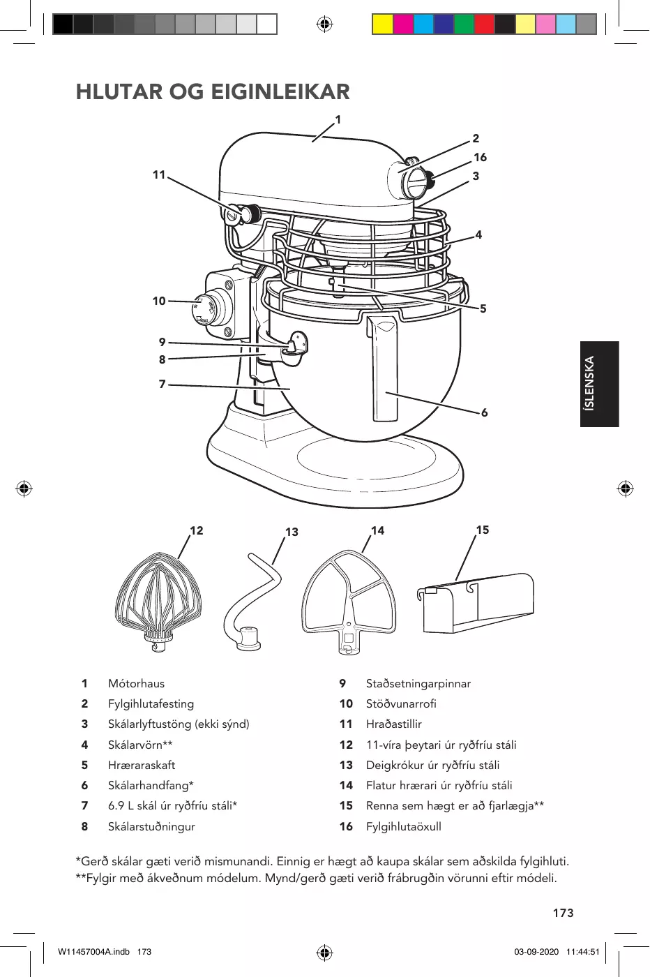 70 dBA. Un * dans le numéro de modèle indique des caractères additionnels désignant la couleur de la machine et les numéros de fabrication du modèle (ex. : 5KSM7990X).