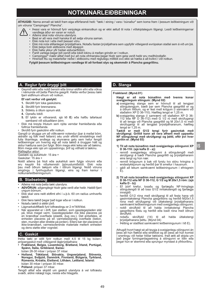 Il est préférable de porter des gants pour assembler le produit. Ne pas utiliser de détendeur réglable. Utliser des détendeurs à réglage fixe conformes à la norme européenne pertinente les. Ne couvrez pas le fond de la chambre de combustion avec de l'aluminium.