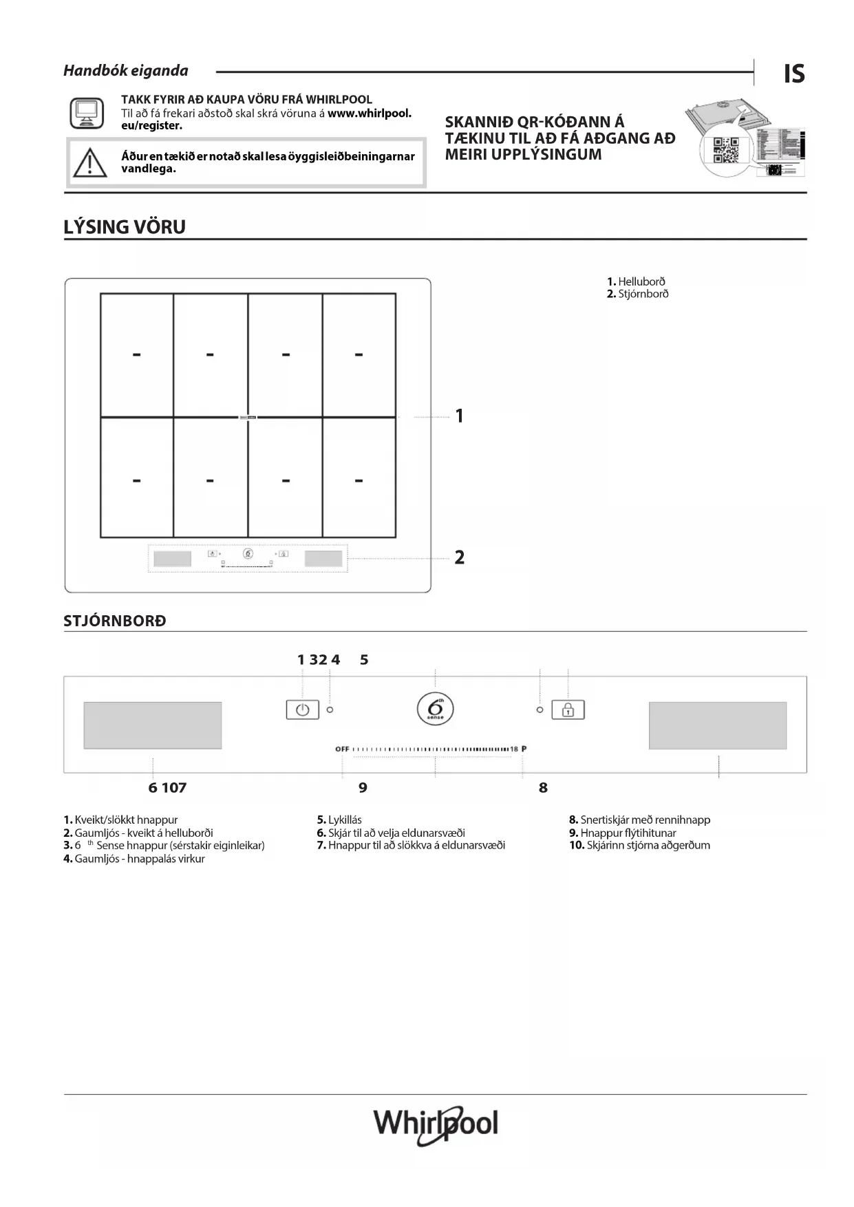 TAKK FYRIR AÐ KAUPA VÖRU FRÁ WHIRLPOOL Til að fá frekari aðstoð skal skrá vöruna á www.whirlpool. eu/register.