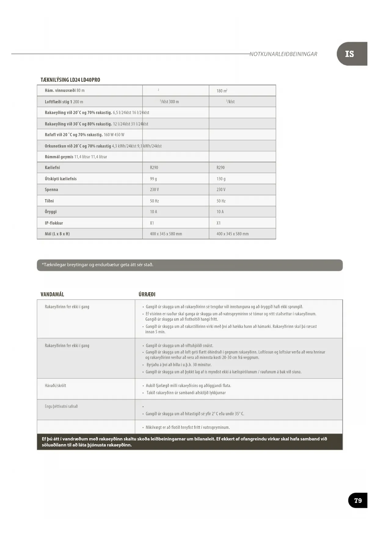 VIÐHALDS Ef rakaeyðirinn þarfnast viðhalds skal fyrst hafa samband við söluaðila.81