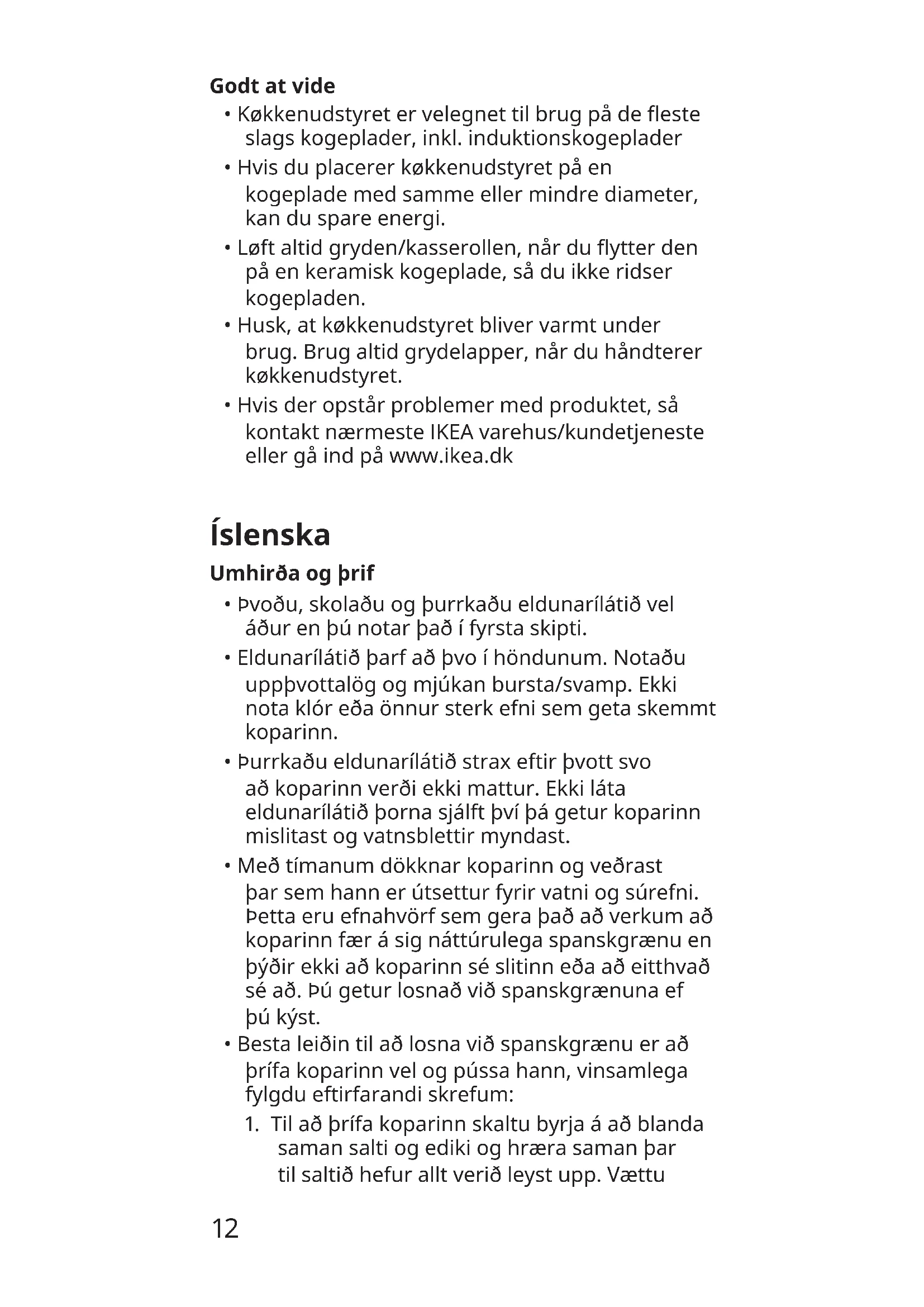 - Ef einhver vandamál koma upp varðandi vöruna, hafðu þá samband við þjónustudeild IKEA eða leitaðu upplýsinga á IKEA.is.14 Norsk Rengjøring og vedlikehold