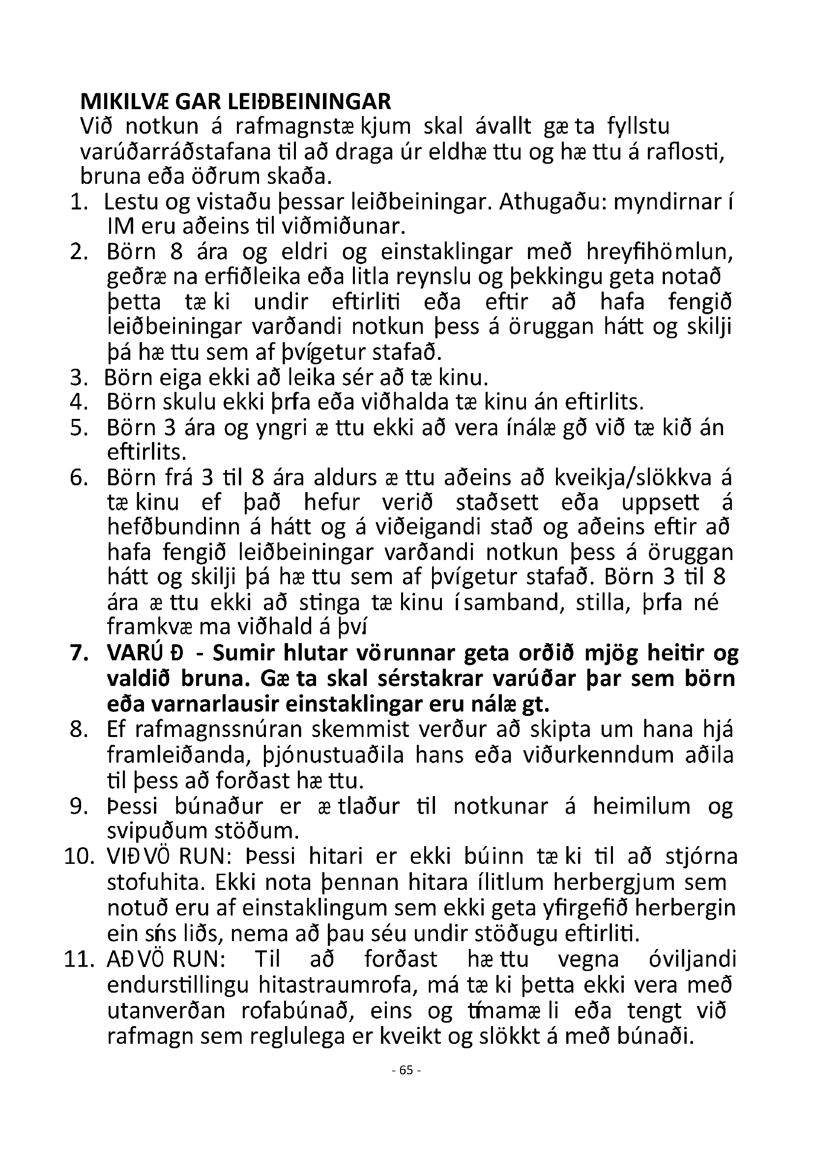 10. VIÐVÖ RUN: Þessi hitari er ekki búinn tæ ki til að stjórna