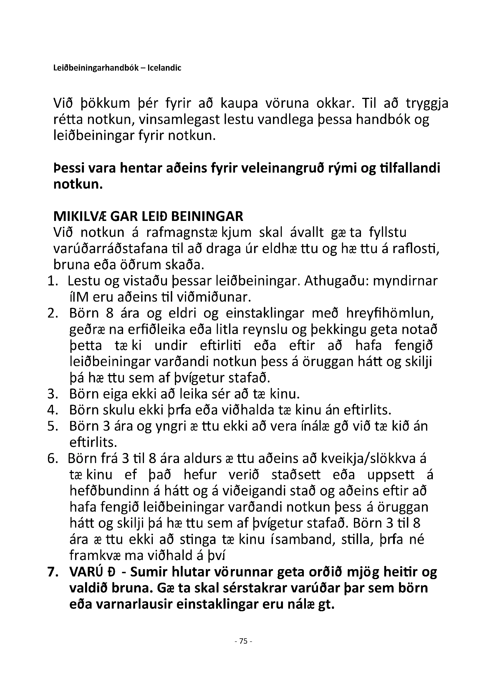 valdið bruna. Gæ ta skal sérstakrar varúðar þar sem börn eða varnarlausir einstaklingar eru nálæ gt.- 76 -