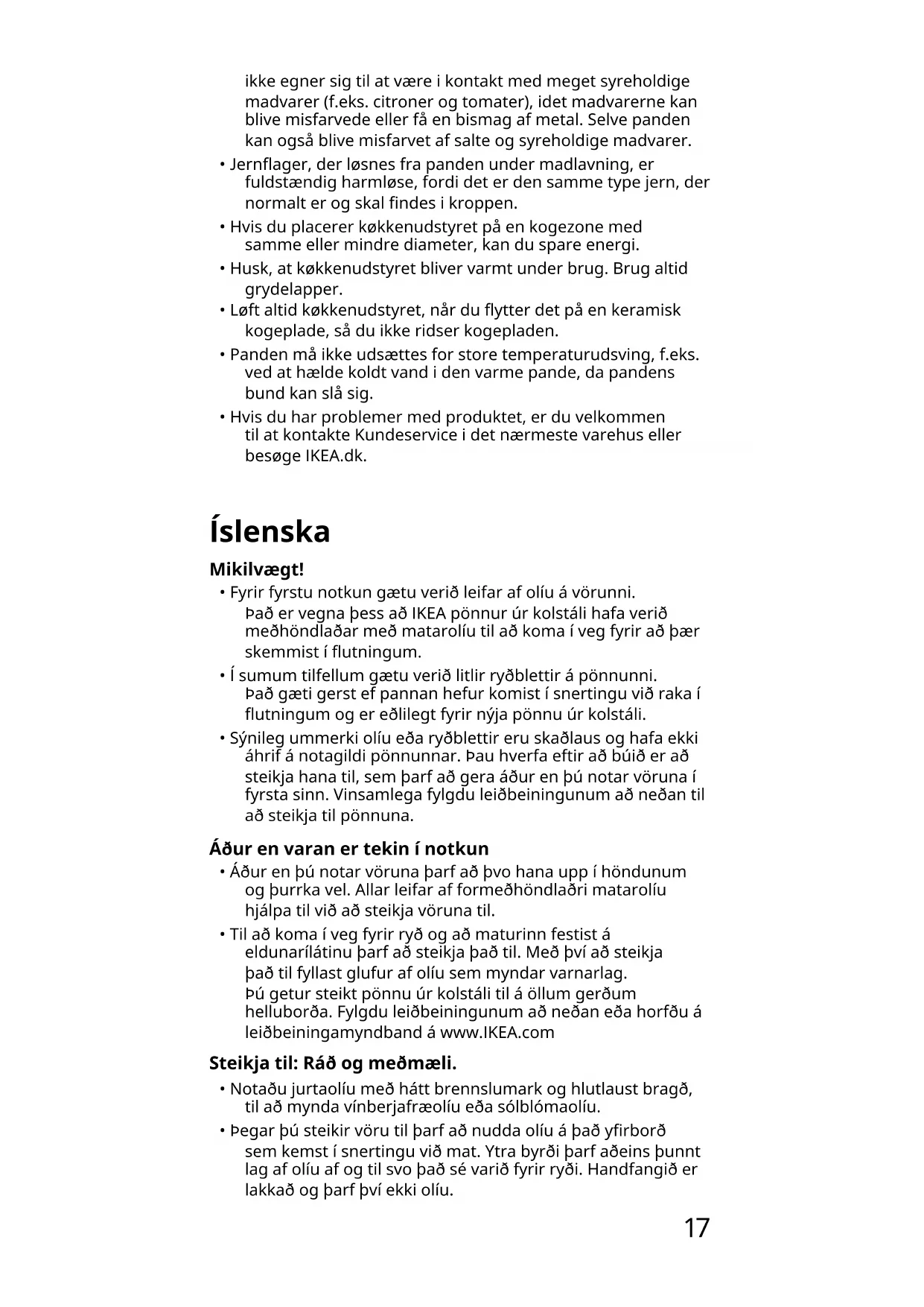 - Fyrir fyrstu notkun gætu verið leifar af olíu á vörunni. Það er vegna þess að IKEA pönnur úr kolstáli hafa verið meðhöndlaðar með matarolíu til að koma í veg fyrir að þær skemmist í utningum.