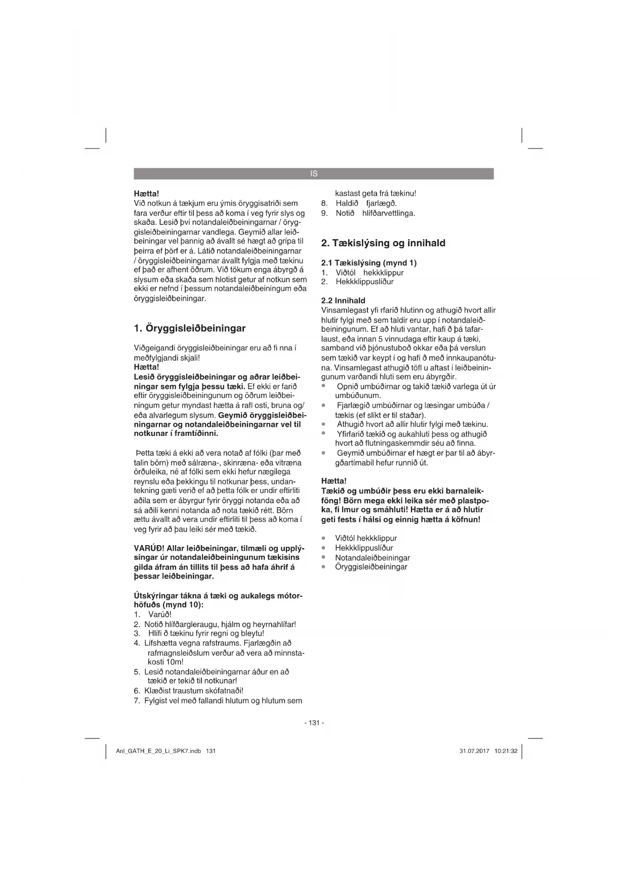 ningunni (myndir 2-3) Hulstrið verður að vera rennt yfi r hekkklippurnar til þess að koma í veg fyrir meiðsli. Anl_GATH_E_20_Li_SPK7.indb 132Anl_GATH_E_20_Li_SPK7.indb 132 31.07.2017 10:21:3231.07.2017 10:21:32IS