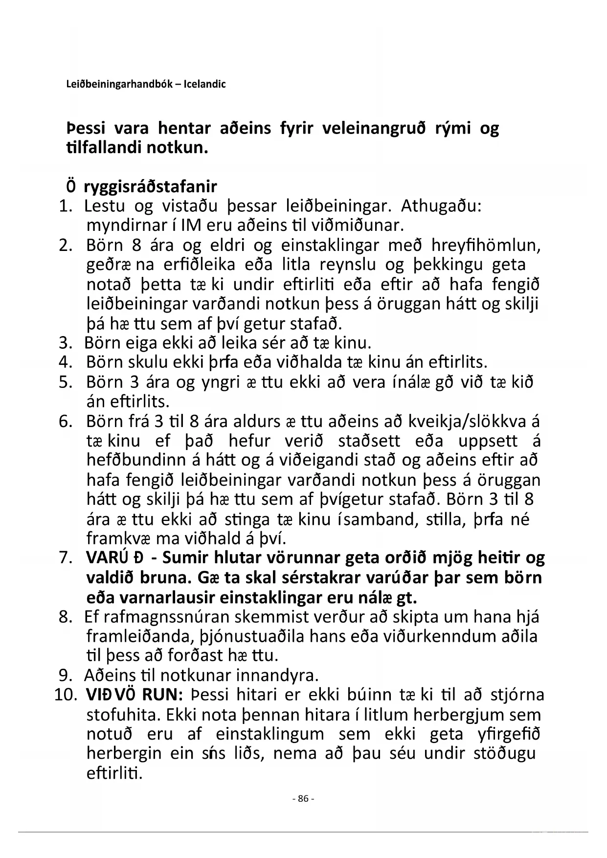 fyrsta sinn. Geymdu leiðbeiningarnar fyrir síðari notkun og láttu nýjan eiganda hafa þæ r ef þú læ tur einhvern annan hafa tæ kið.