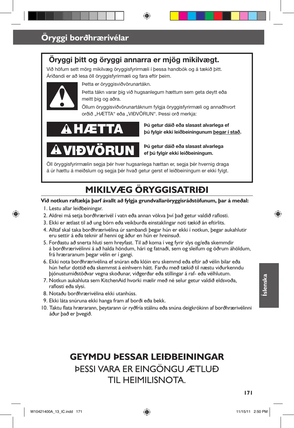 MODE D'EMPLOI 5KSM7580, 5KSM7580XEMS KITCHENAID