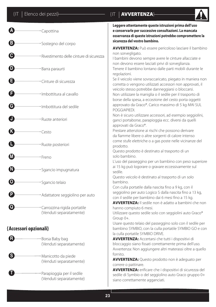 SYMBIO - Passeggini GRACO - Manuale utente e istruzioni gratuiti