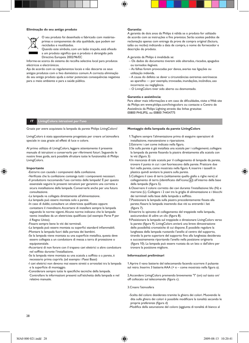 Al primo utilizzato di LivingColors, leggere attendamente il presente manuale di istruzioni e conservarlo per riferimenti futuri. Seguendo le nostre linee guida, sare possible fruttare tutte le funzialità di Philips LivingColors.