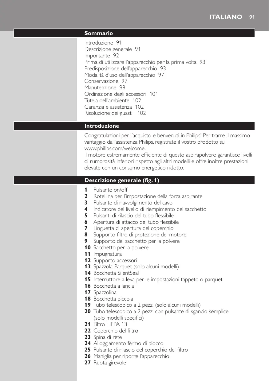 FC9312/01 - Aspirapolvere PHILIPS - Manuale utente e istruzioni gratuiti