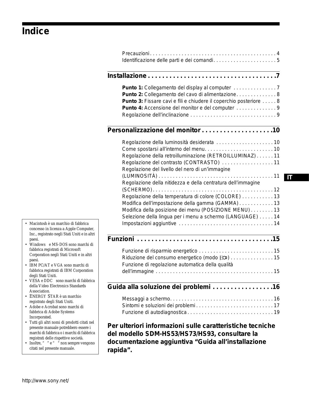 Scarica le istruzioni per il tuo Monitor in formato PDF gratuitamente! Trova il tuo manuale SDM-HS93 - SONY e riprendi in mano il tuo dispositivo elettronico. In questa pagina sono pubblicati tutti i documenti necessari per l'utilizzo del tuo dispositivo. SDM-HS93 del marchio SONY.