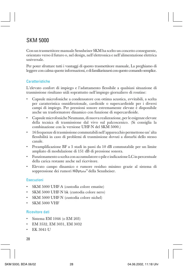 SKM 5000 - Microfono Wireless SENNHEISER - Manuale utente e istruzioni gratuiti