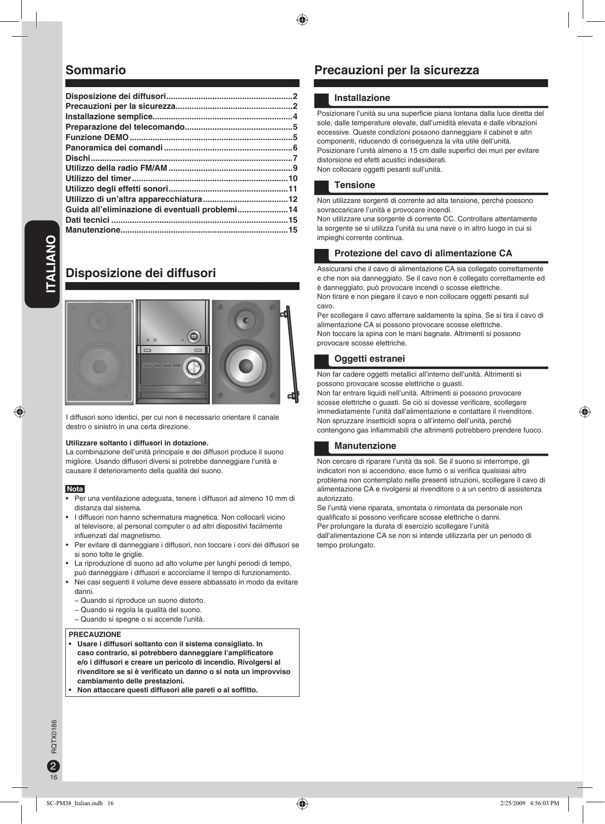 - SC-PM38_Ge.indb 15 2/25/2009 4:54:15 PM Sommario ITALIANO Disposizione dei diffusori p. 2
