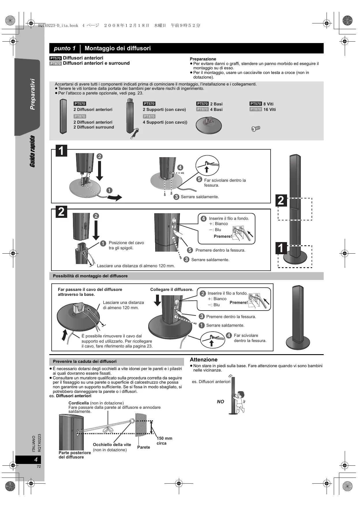∏ [PT570] 2 Basi [PT870] 4 Basi ∏ 1 Microfono di configurazion e del diffusore automatico ∏ 1 Antenna FM interna ∏ 1 Foglio di etichette per i cavi dei diffusori ITALIANO RQTX0223 (N2QAYB000361)