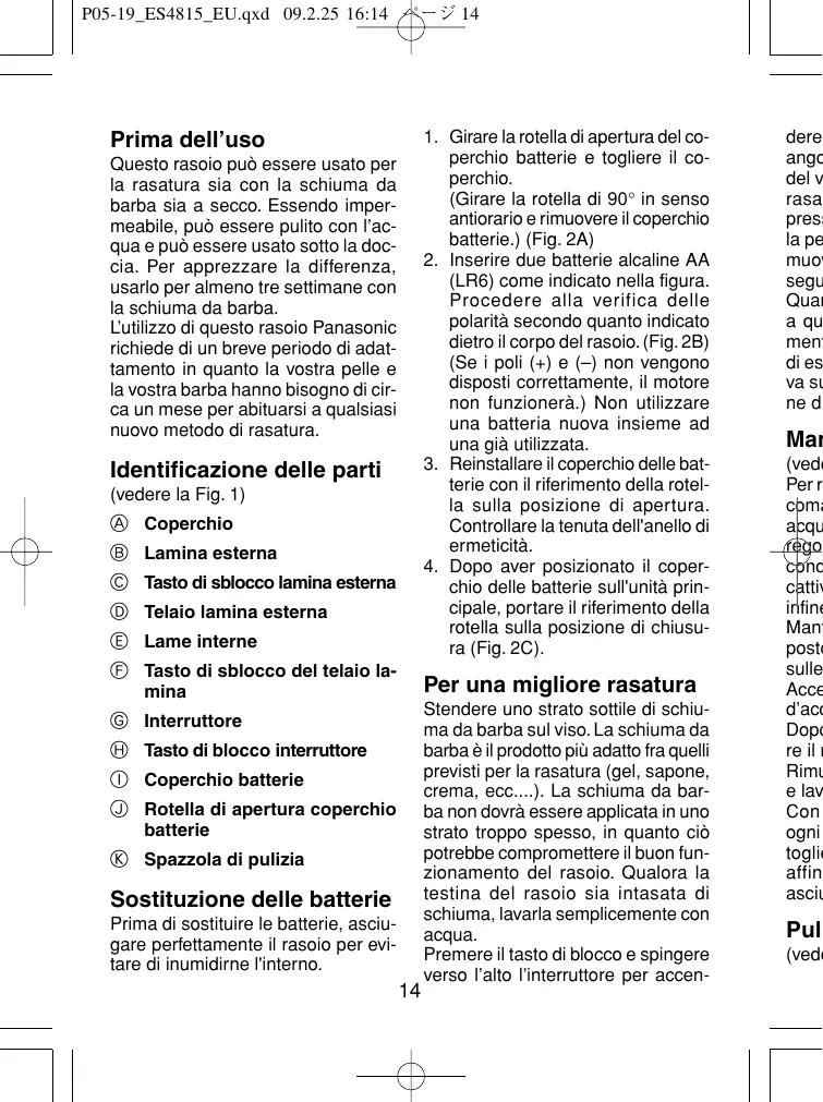 ES4815 - Rasoio PANASONIC - Manuale utente e istruzioni gratuiti