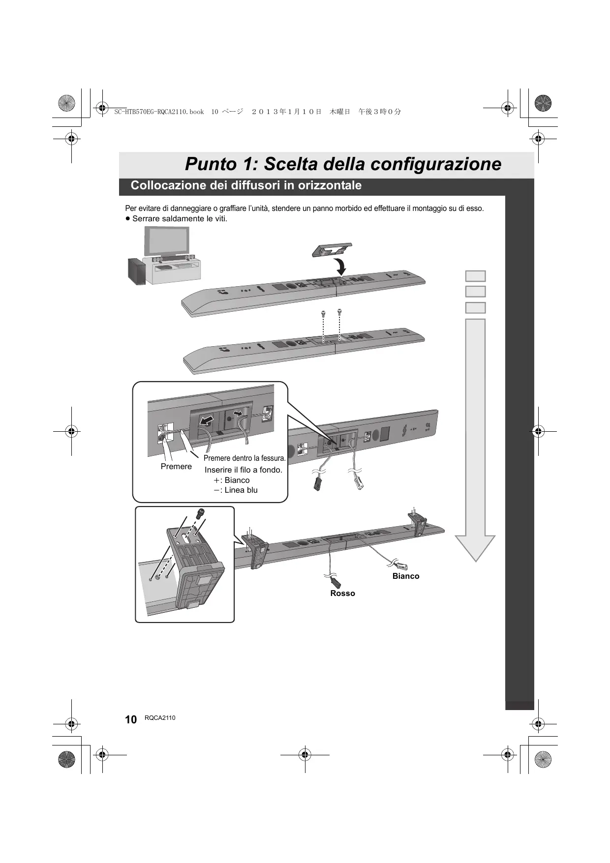 Punto 1: Scelta della configurazione Collocazione dei diffusori in orizzontale Per evitare di danneggiare o graffiare l’unità, stendere un panno morbido ed effettuare il montaggio su di esso. ≥ Serrare saldamente le viti.