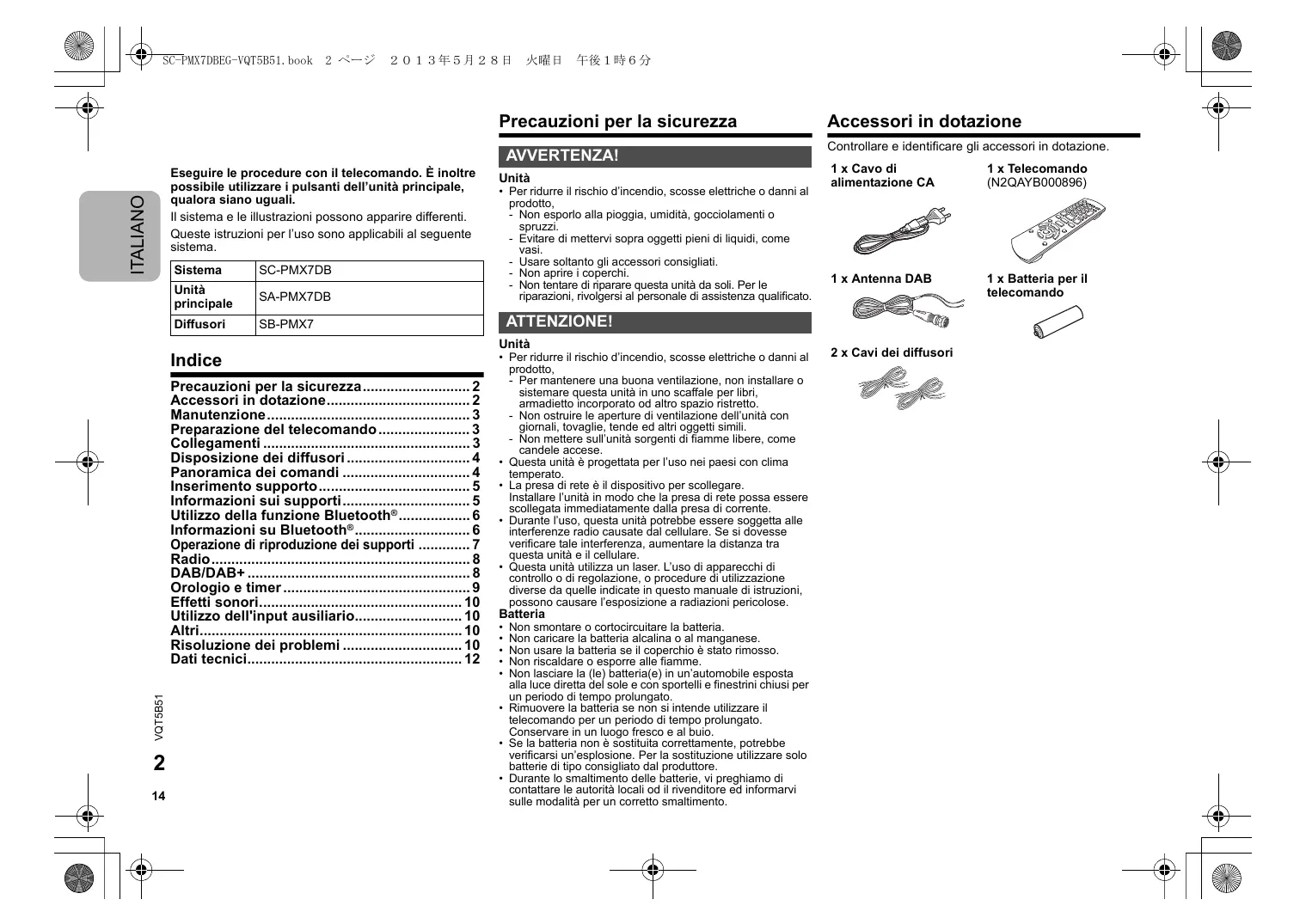 - Le registrazioni non saranno riprodotte necessariamente nell’ordine in cui sono state registrate. VQT5B51 SC-PMX7DBEG-VQT5B51.book 5 ページ 2013年5月28日