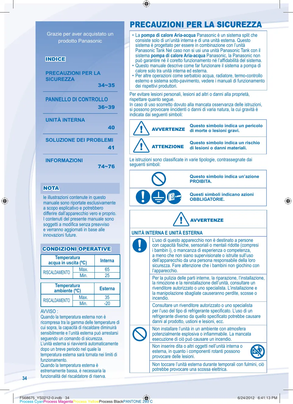 Antes de operar la unidad asegúrese de que la instalación haya sido realizada correctamente por un instalador autorizado, siguiendo de forma correcta y precisa las instrucciones de instalación dadas. DEUTSCH Bevor Sie das Gerät in Betrieb nehmen, lesen Sie bitte diese Bedienungsanleitung aufmerksam durch und bewahren Sie sie für die künftige Verwendung auf. Vor der Inbetriebnahme dieses Geräts ist sicherzustellen, dass die Montage durch einen autorisierten Händler fachgerecht entsprechend der Installationsanleitung durchgeführt wurde. ITALIANO Prima di utilizzare l’unità si prega di leggere attentamente le istruzioni e di conservare questo opuscolo per potervi fare riferimento in futuro. PANNEAU DE COMMANDE 12~15 UNITÉ INTÉRIEURE • Pour le fonctionnement d’autres systèmes tels que le réservoir d’eau, le radiateur, le contrôleur thermique externe et le chauffage au sol, référez-vous aux modes d’emploi de leurs fabricants respectifs. Pour éviter des blessures corporelles sur vous-même et sur les autres ou des dégâts matériels, respectez les instructions ci-dessous. Tout dysfonctionnement dû au non-respect des instructions peut occasionner des nuisances ou des dégâts dont la gravité est classée comme décrit ci-après: