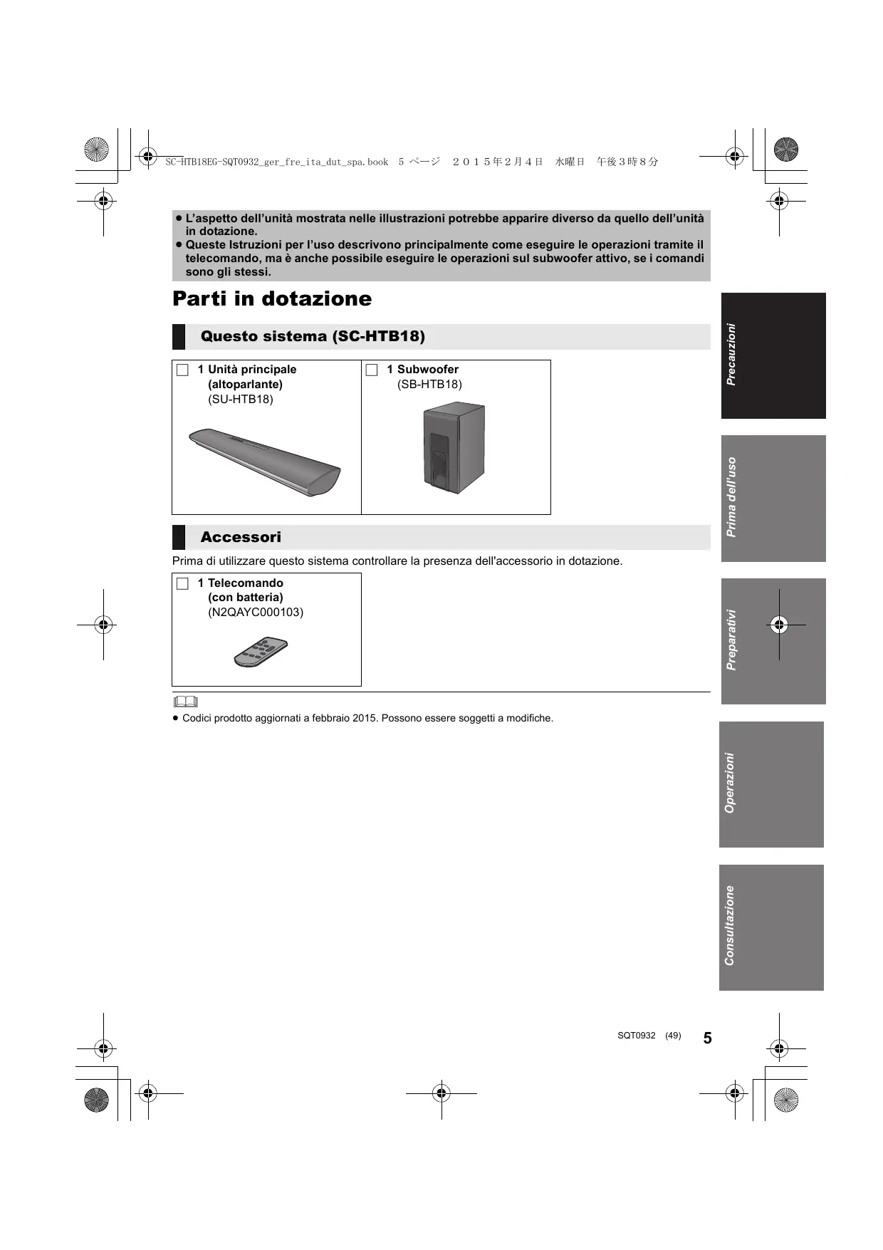 Scarica le istruzioni per il tuo Barra audio in formato PDF gratuitamente! Trova il tuo manuale SC-HTB18EB - PANASONIC e riprendi in mano il tuo dispositivo elettronico. In questa pagina sono pubblicati tutti i documenti necessari per l'utilizzo del tuo dispositivo. SC-HTB18EB del marchio PANASONIC.