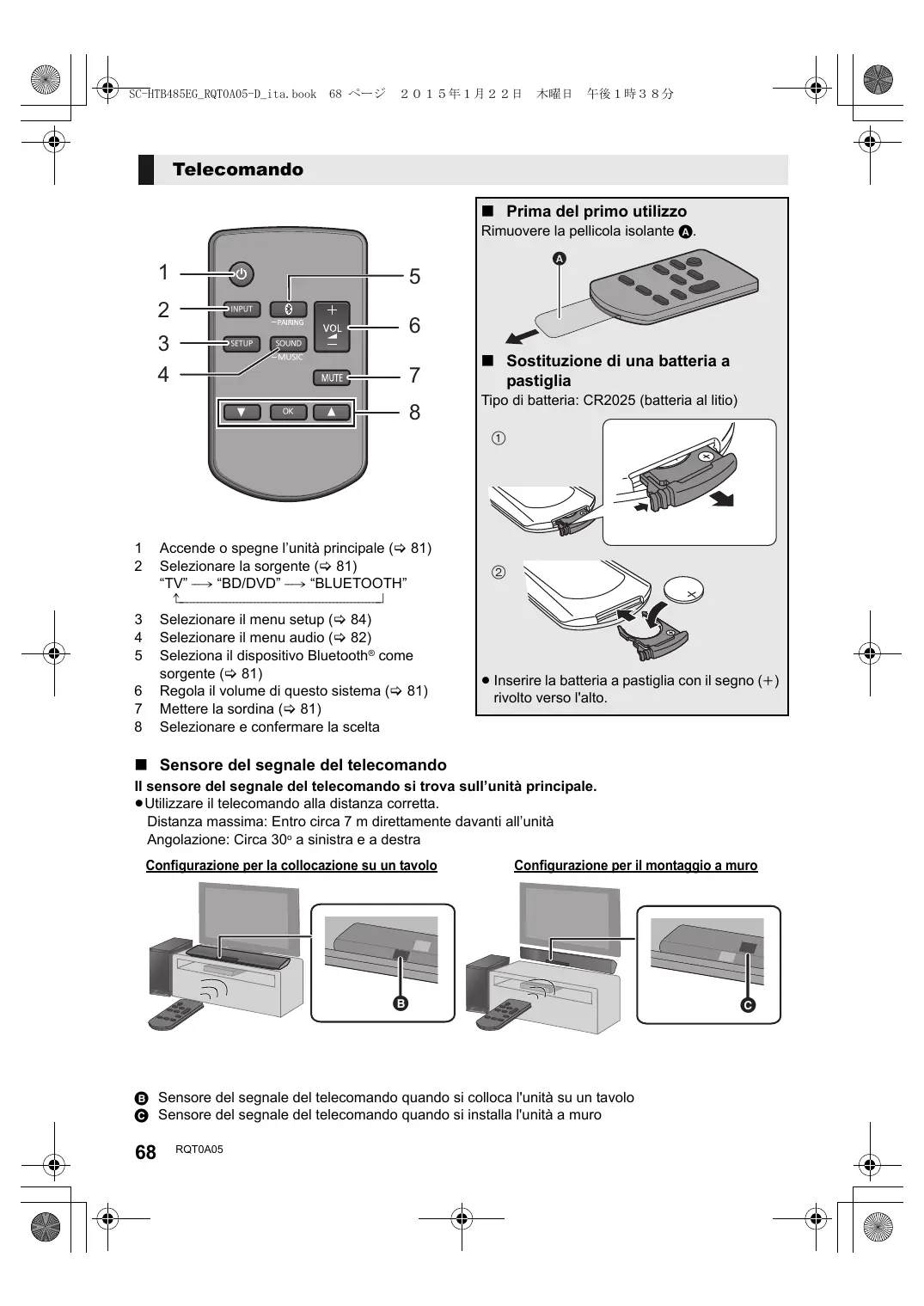 Rimuovere la batteria se si preveDE di non utilizzARE il telecomando per lungo tempo. Conservarla in un luogo fresco e al riparo alla luce.