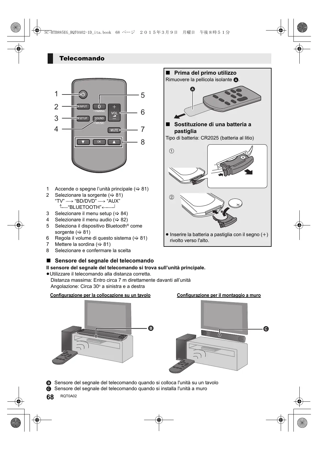 Telecomando ∫ Prima del primo utilizzo Rimuovere la pellicola isolante A.