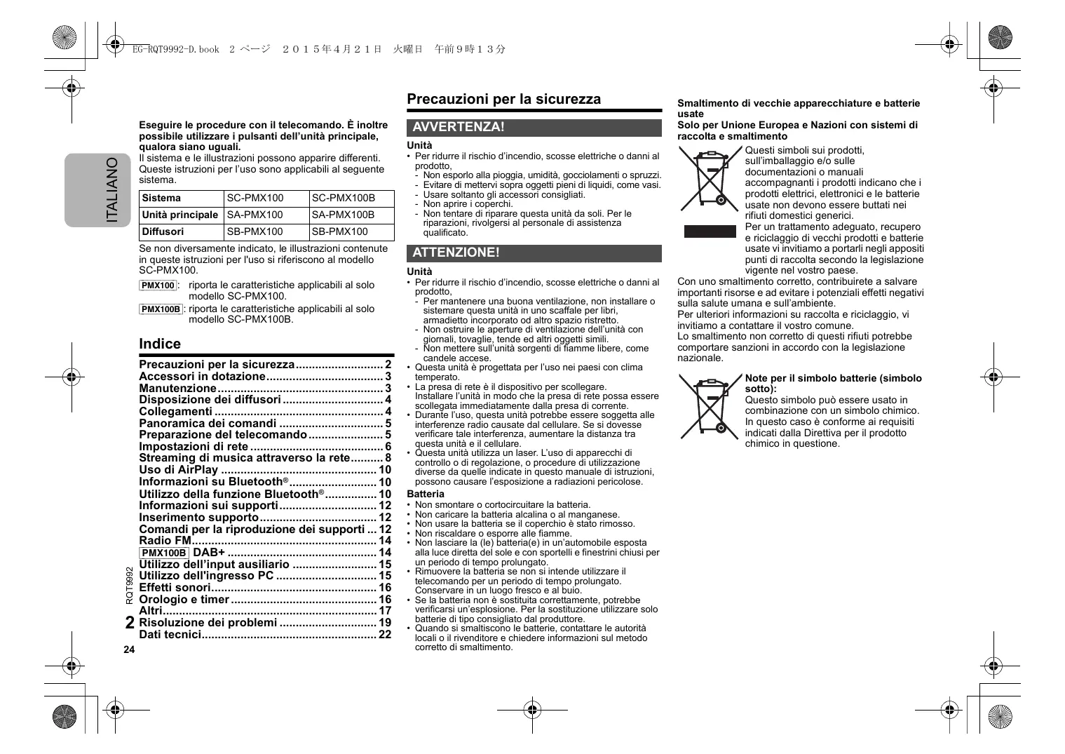 Scarica le istruzioni per il tuo Cassa acustica in formato PDF gratuitamente! Trova il tuo manuale SC-PMX100EG - PANASONIC e riprendi in mano il tuo dispositivo elettronico. In questa pagina sono pubblicati tutti i documenti necessari per l'utilizzo del tuo dispositivo. SC-PMX100EG del marchio PANASONIC.