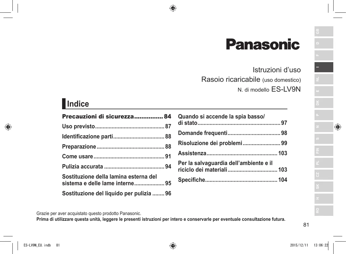 MANUALE UTENTE ES-LV9N PANASONIC