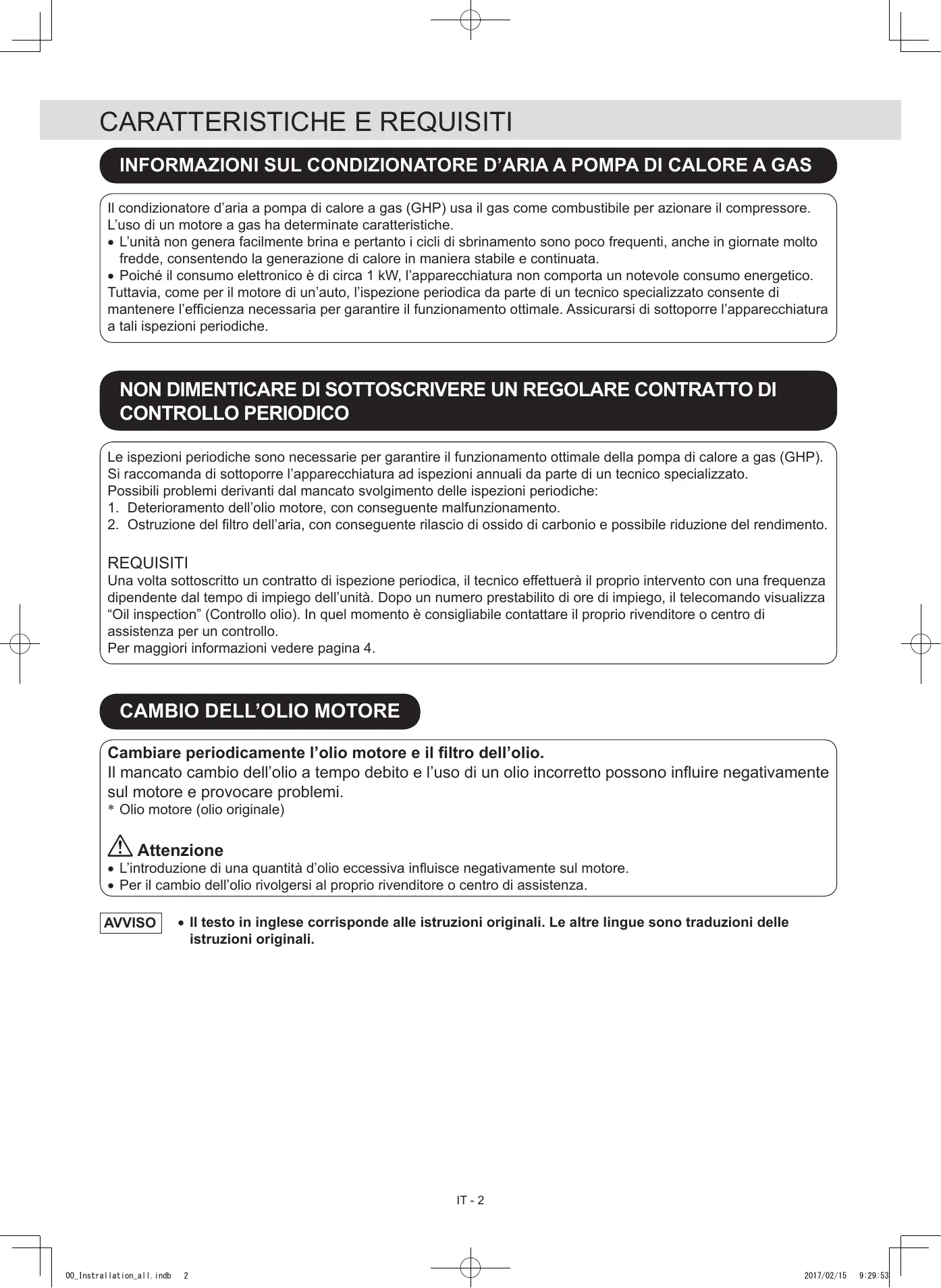 VEUILLEZ VOUS ASSURER D’AVOIR SIGNÉ UN CONTRAT DE MAINTENANCE RÉGULIÈRE Afin que le GHP fonctionne de manière satisfaisante pour une longue durée, des inspections périodiques sont nécessaires.