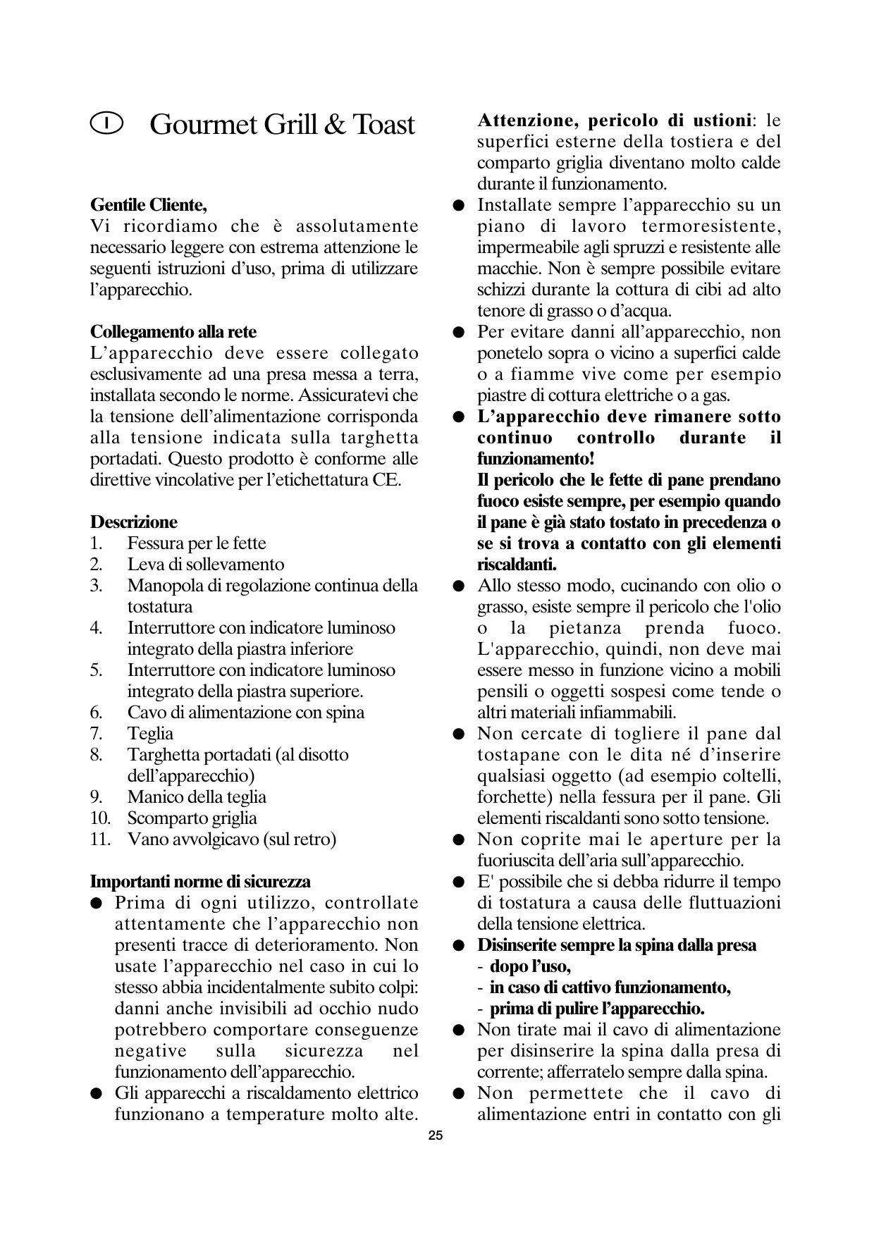 - Il comparto griglia e la tostiera posso noni essere usati contemporaneamente.