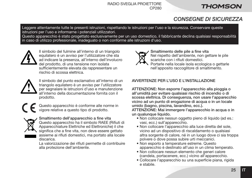 Scarica le istruzioni per il tuo in formato PDF gratuitamente! Trova il tuo manuale CP280 - THOMSON e riprendi in mano il tuo dispositivo elettronico. In questa pagina sono pubblicati tutti i documenti necessari per l'utilizzo del tuo dispositivo. CP280 del marchio THOMSON.