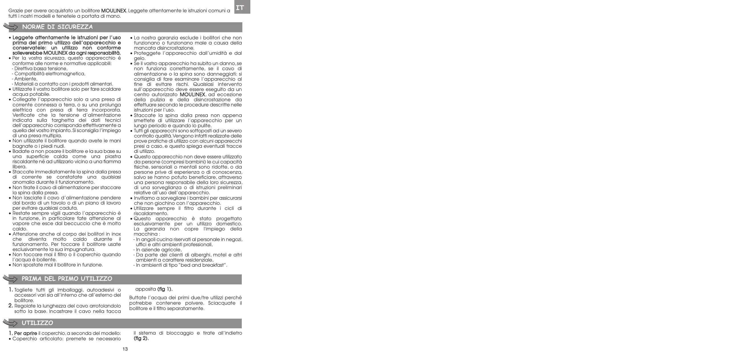 Grazie per avere acquistato un bollitore MO U L INEX. Leggete attentamente le istruzioni comuni a tutti i nostri modelli e tenetele a portata di mano.