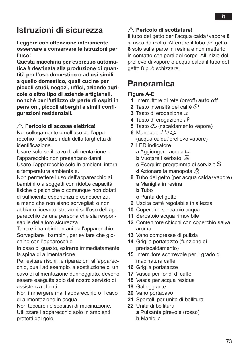 Figures A-E 13 Trémie pour pastilles de nettoyage 14 Plateau chauffe-tasses 15 Curseur de finesse de mouture du café 16 Grille 17 Tiroir à café 18 Bac collecteur d’eau 19 Flotteur 20 Logement pour le cordon électrique 21 Volet de la chambre de percolation 22 Chambre de percolation a Bouton-poussoir (rouge) b Poignée