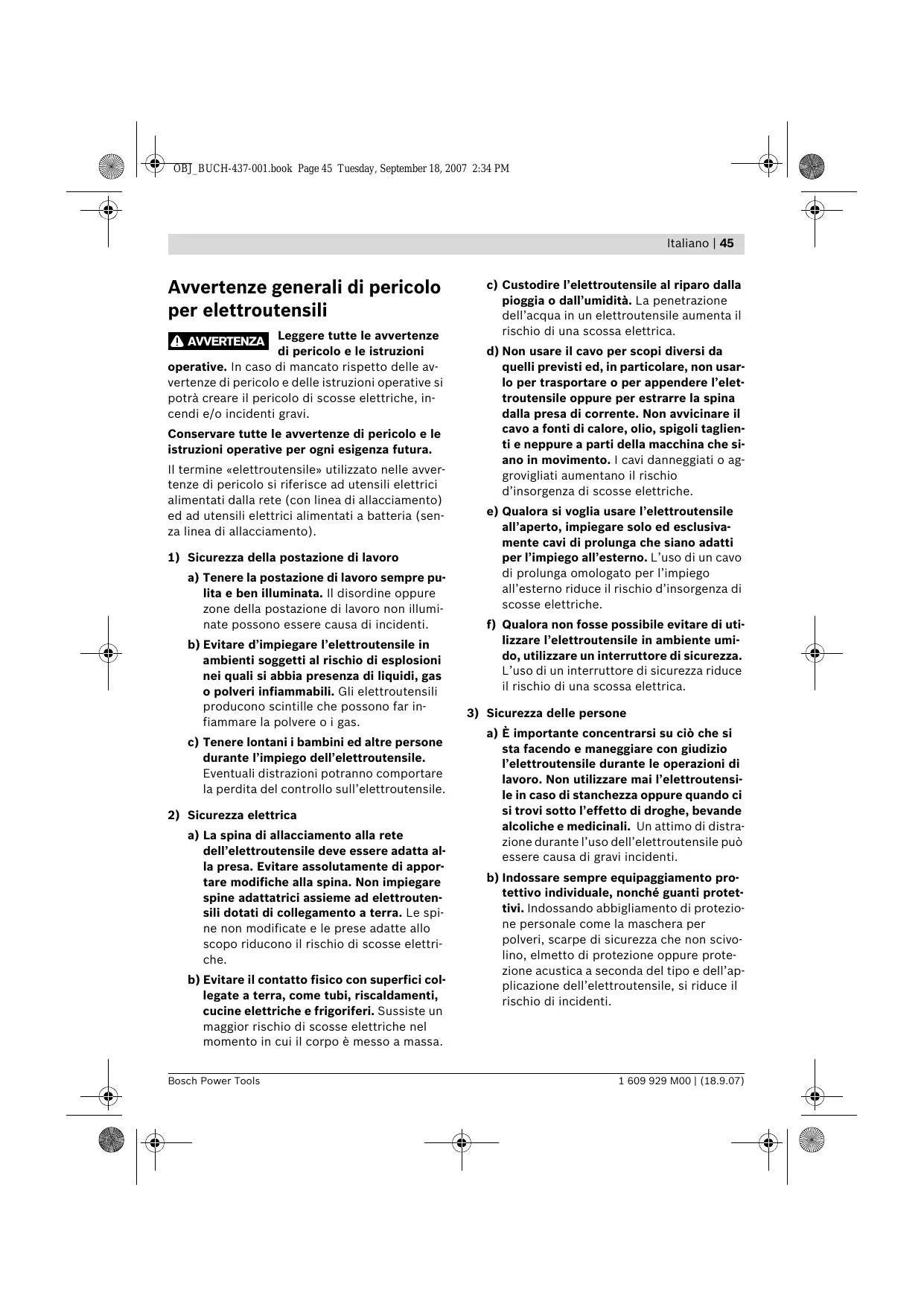 Avvertenze generali di pericolop er eletttroutensili