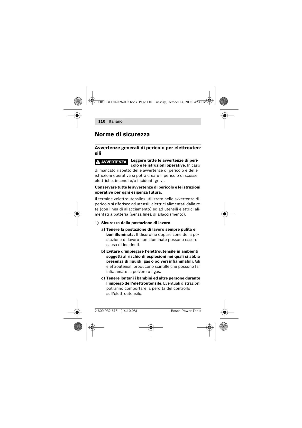 g) Utilizzare l'elettroutensile, gli accessori opzionali, gli utensili per applicazioni specifiche ecc., sempre attenendosi alle presenti istruzioni. Cosi faccendo, tenere sempre presente le condizioni di lavoro e le operazioni da eseguire. L'impiego di elettroutensili per usi diversi da quali consentiti potra dar luogo a situazioni di pericolo.