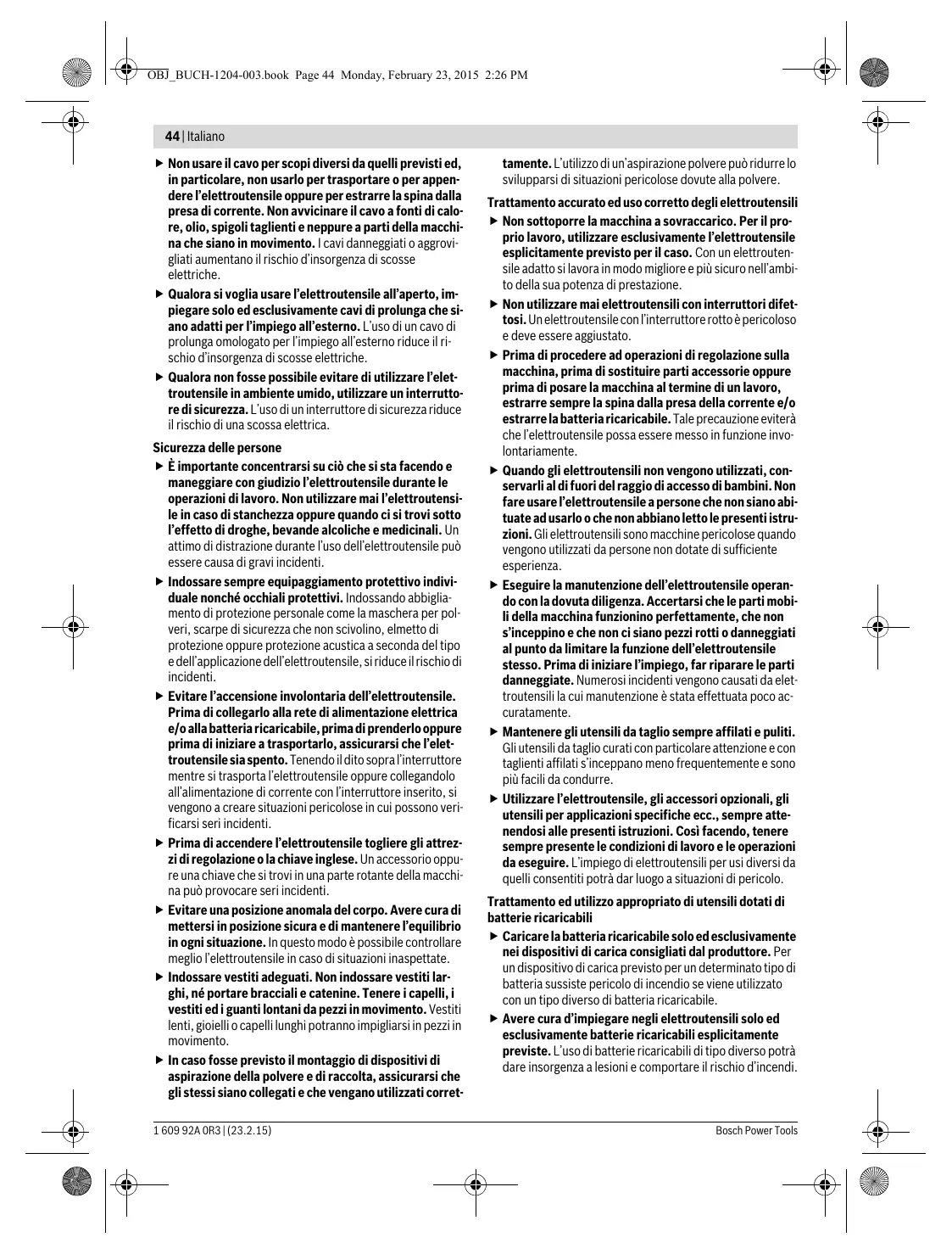 Declaramos bajo nuestra exclusiva responsabilidad, que el producto descrito en los “Datos técnicos” cumple con todas las disposiciones correspondientes de las directivas 2009/125/CE (Reglamento 1194/2012), 2011/65/UE, hasta el 19 de abril de 2016: 2004/108/CE, desde el 20 de abril de 2016: 2014/30/UE, 2006/42/CE inclusive sus modificaciones y está en conformidad con las siguientes normas: EN 60745-1, EN 60745-2-11. Expediente técnico (2006/42/CE) en: Robert Bosch GmbH, PT/ETM9, 70764 Leinfelden-Echterdingen, GERMANY Henk Becker Helmut Heinzelmann En caso de una desconexión automática de la herramienta eléctrica no mantenga accionado el interruptor de conexión/desconexión. El acumulador podría dañarse. Para desmontar el acumulador 4 presione el botón de extracción 5 y saque el acumulador de la herramienta eléctrica tirando de él hacia arriba. No proceda con brusquedad. Observe las indicaciones referentes a la eliminación.