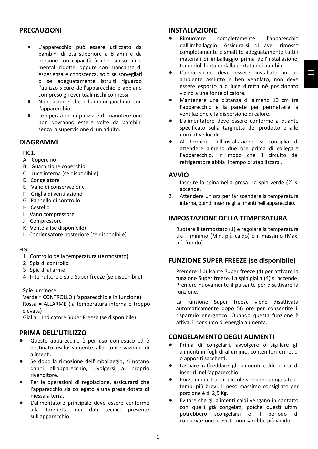 1 Contrôle de la température (thermostat) 2 Voyant de contrôle 3 Voyant d'alarme 4 Interrupteur et voyant Super Freeze (selon modèle)