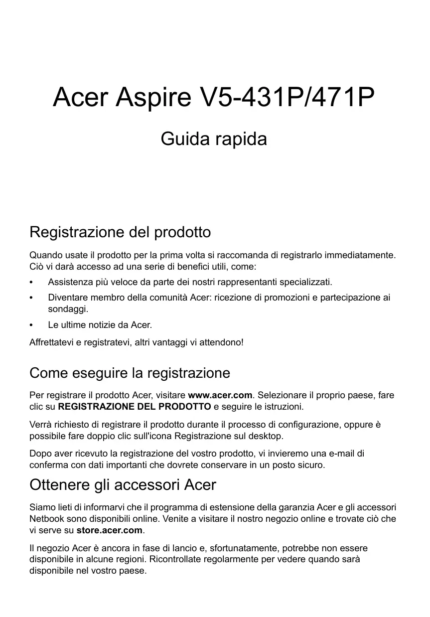 ASPIRE V5-431PG - Portatile ACER - Manuale utente e istruzioni gratuiti