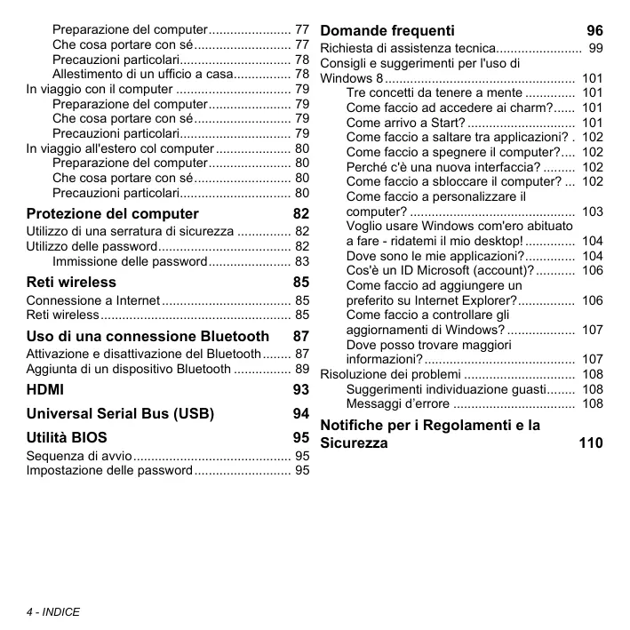 Quando ci si sposta entro brevi distanze, ad esempio dalla scrivania del proprio ufficio ad una sala riunioni. Teclas de acceso directo 31 Optimización de la vida de la batería Teclas de Windows 34 Comprobación del nivel de carga de Panel táctil 35 la batería Aspectos básicos del panel táctil 35 Aviso de baja carga de batería Gestos de panel táctil 36 Instalación y retirada de la batería