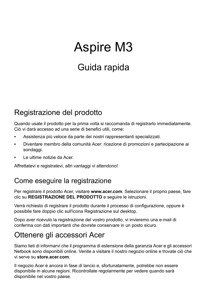 ASPIRE M3-580G - Portatile ACER - Manuale utente e istruzioni gratuiti