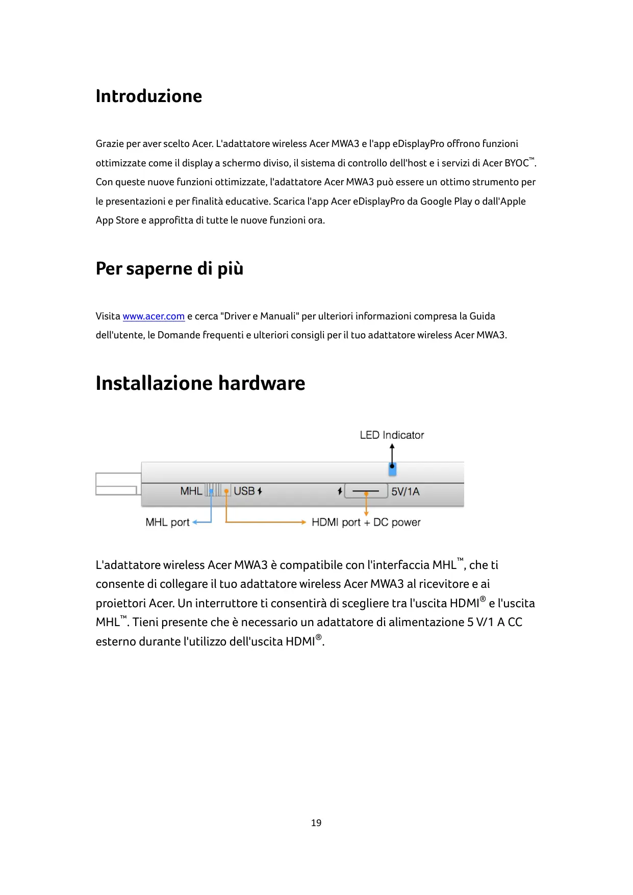 Scarica le istruzioni per il tuo in formato PDF gratuitamente! Trova il tuo manuale WIRELESSCAST - ACER e riprendi in mano il tuo dispositivo elettronico. In questa pagina sono pubblicati tutti i documenti necessari per l'utilizzo del tuo dispositivo. WIRELESSCAST del marchio ACER.