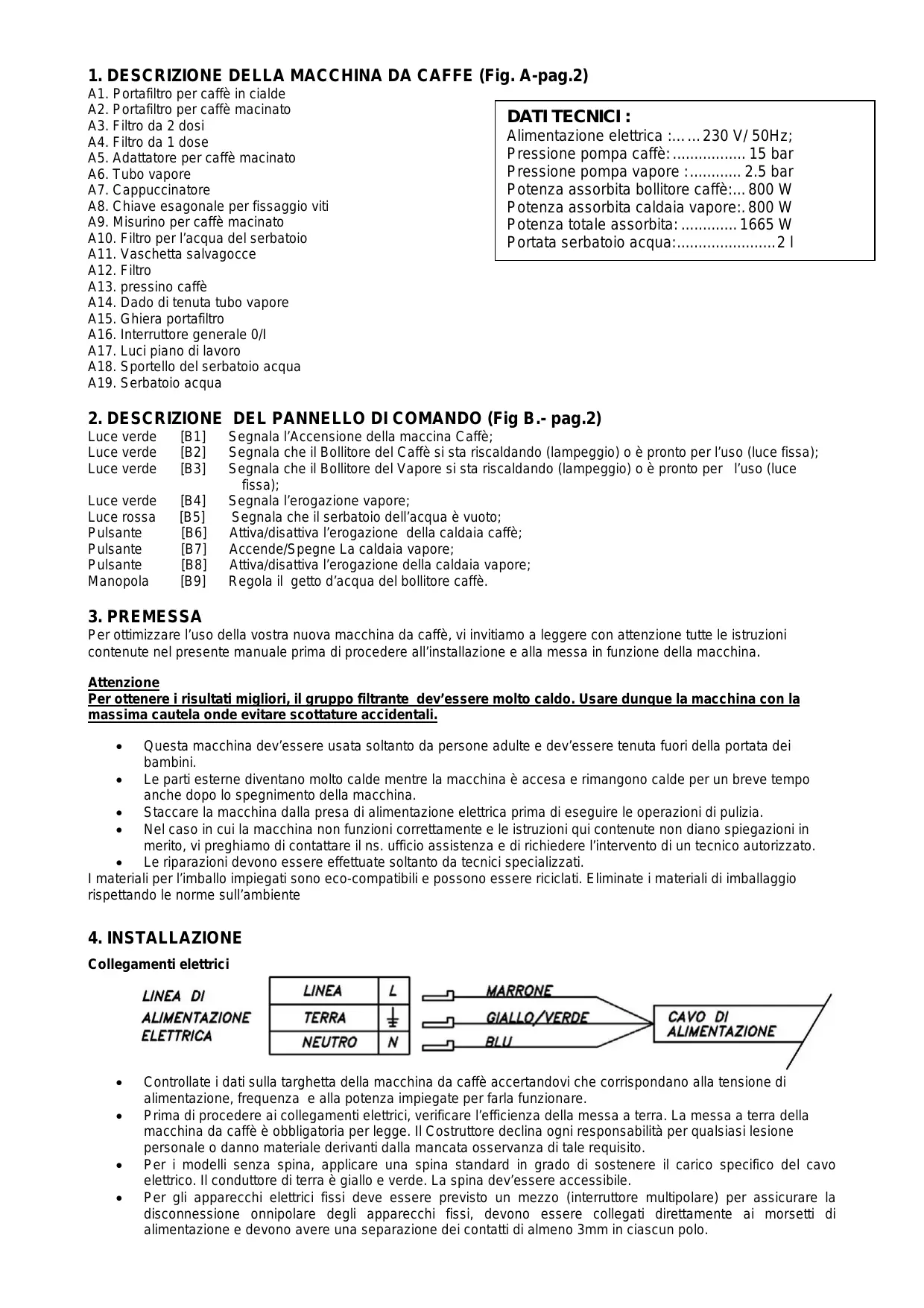 1. DESCRIZIONE DELLA MACCHINA DA CAFFE (Fig. A-pag.2)