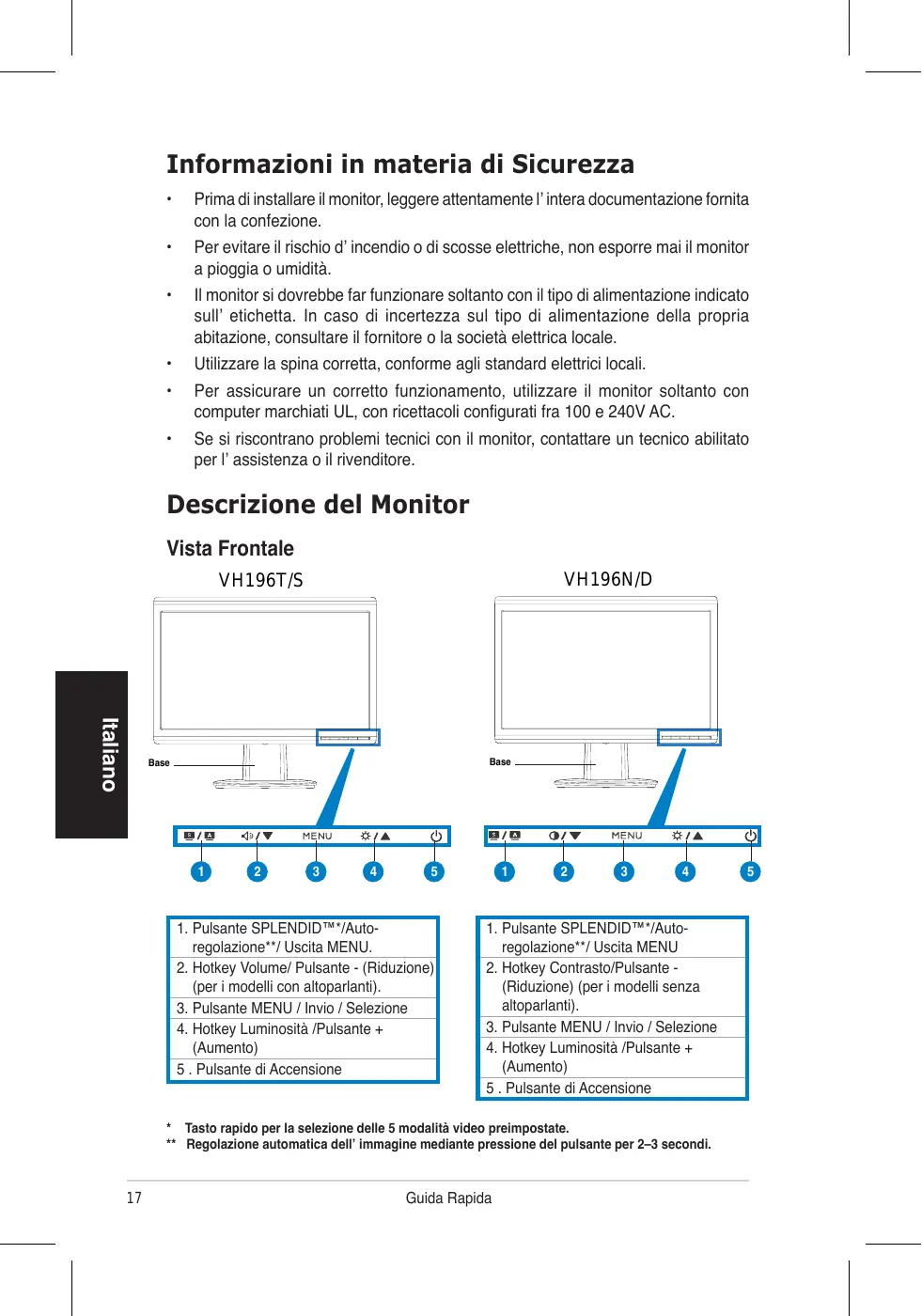 VH196D - Monitor ASUS - Manuale utente e istruzioni gratuiti
