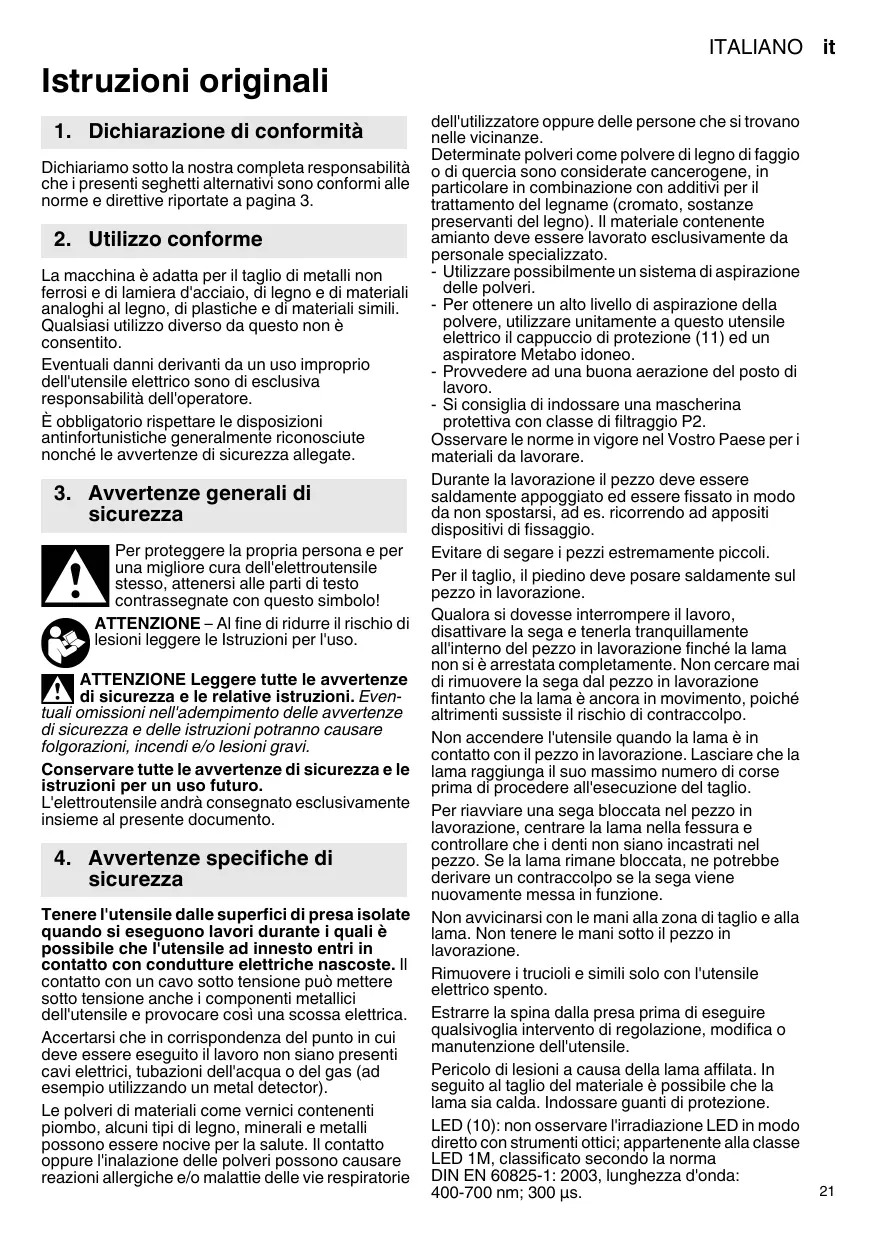 Per ottener un alto livello di aspirazione della polvere, utilizeszare unitamente a questo utensile elettrico il cappuccio di protezione (11) ed un aspiratore Metabo idoneo.