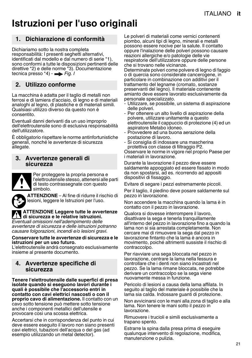 Utilizzato escludivamente accessori originali Metabo Fig. G.